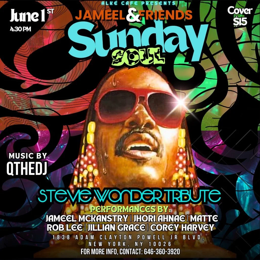 Jun 1 Jameel & Friends (Stevie Wonder Tribute) Sunday, June 1, 2025 4:30 PM 7:00 PM Alke Café (map) Google Calendar ICS View Event →