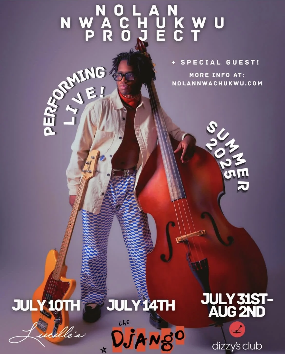 Aug 2 to Aug 3 Nolan Nwachukwu Project @ Dizzy’s Late Night Sat, Aug 2, 2025 11:00 PM Sun, Aug 3, 2025 12:00 AM Dizzy’s Jazz Club (map) Google Calendar ICS View Event →